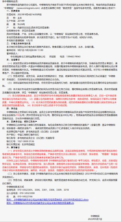 9月4日中儲糧內蒙古分公司玉米競價銷售專場公告