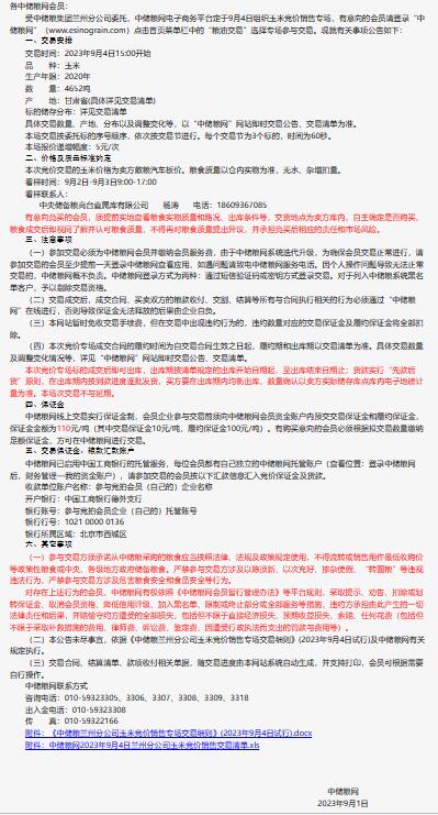 9月4日中儲糧蘭州分公司玉米競價銷售專場公告