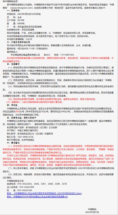 9月6日中儲糧儲運公司玉米競價銷售專場公告