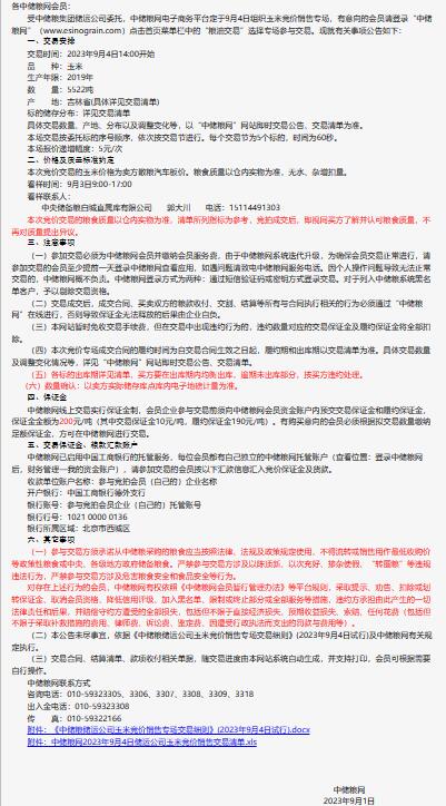9月4日中儲糧儲運公司玉米競價銷售專場公告