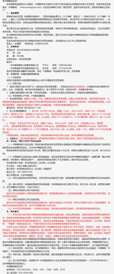 9月4日中儲糧西安分公司玉米購銷雙向競價交易專場公告