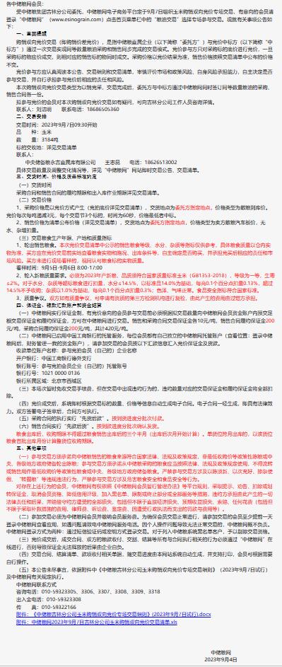 9月7日中儲糧吉林分公司玉米購銷雙向競價交易專場公告