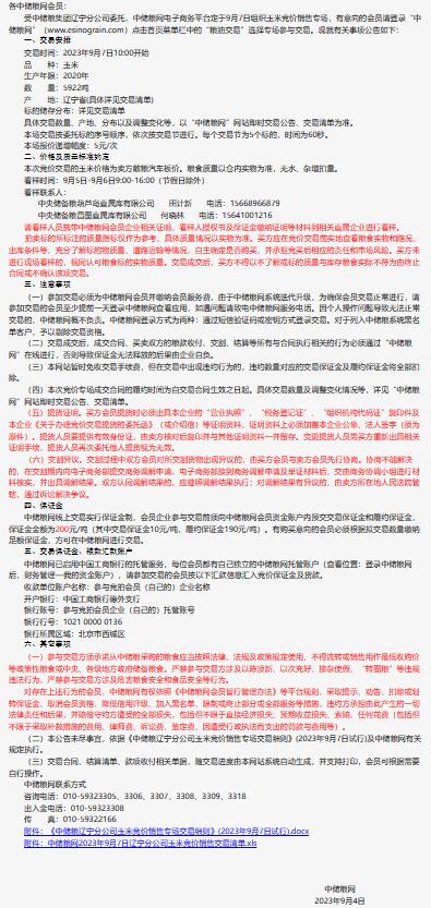 9月7日中儲糧遼寧分公司玉米競價銷售專場公告