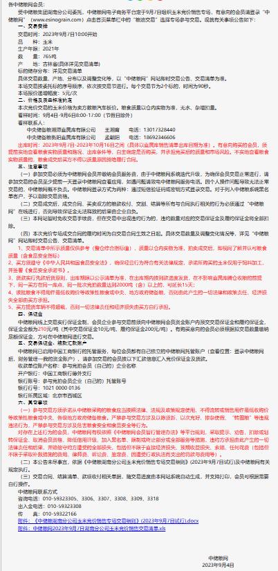 9月7日中儲糧湖南分公司玉米競價銷售專場公告