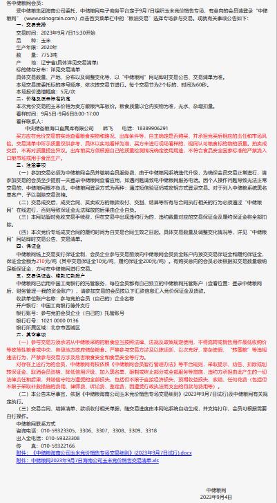 9月7日中儲糧海南分公司玉米競價銷售專場公告