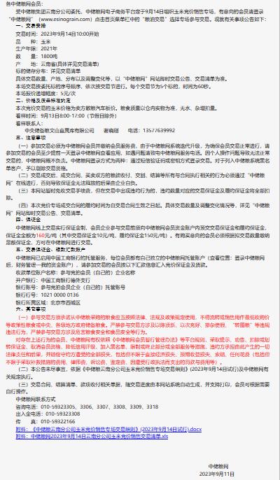 9月14日中儲糧云南公司玉米競價銷售專場公告