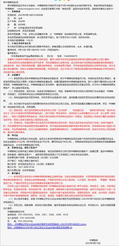 9月14日中儲糧遼寧公司玉米競價銷售專場公告