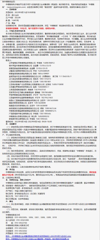 9月15日中儲糧進口玉米及整理物(轉基因)競價銷售專場公告
