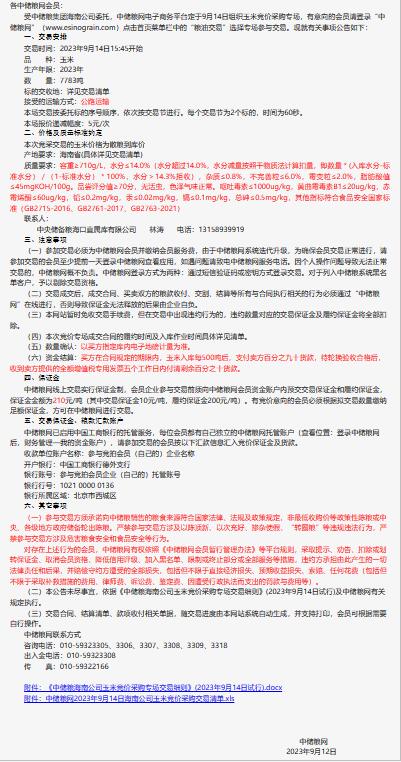 9月14日中儲糧海南公司玉米競價銷售專場公告