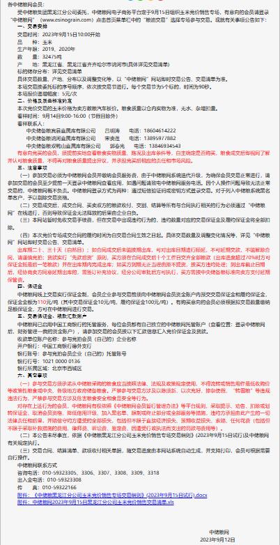 9月15日中儲糧黑龍江公司玉米競價銷售專場公告