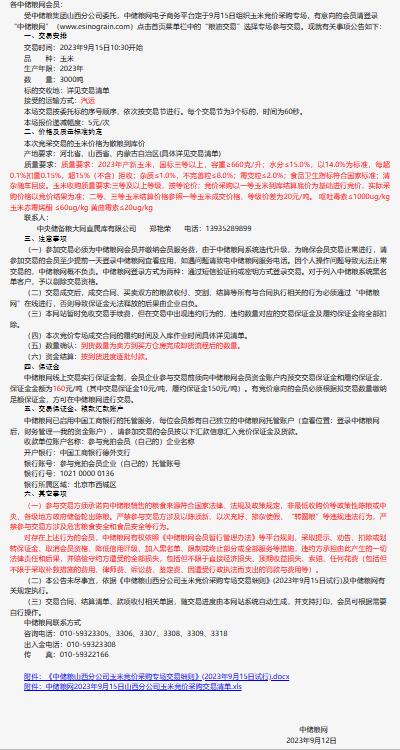 9月15日中儲糧山西公司玉米競價采購專場公告