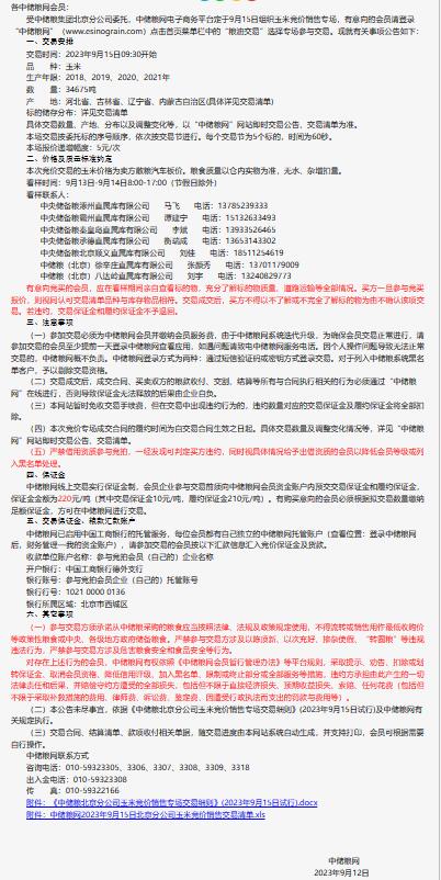 9月15日中儲糧北京公司玉米競價銷售專場公告