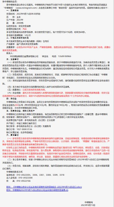 9月15日中儲糧山東公司玉米競價采購專場公告