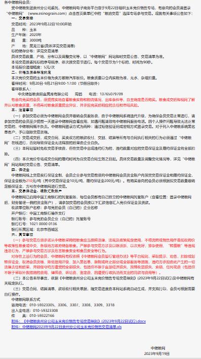 9月22日中儲糧貴州公司玉米競價銷售專場公告