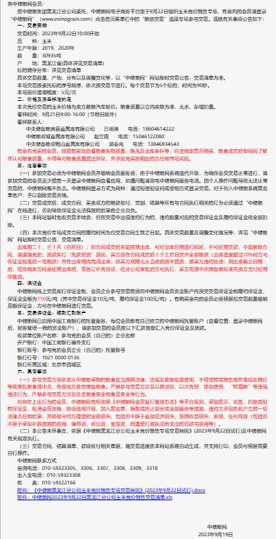 9月22日中儲糧黑龍江公司玉米競價銷售專場公告