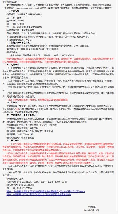 9月22日中儲糧山西公司玉米競價銷售專場公告