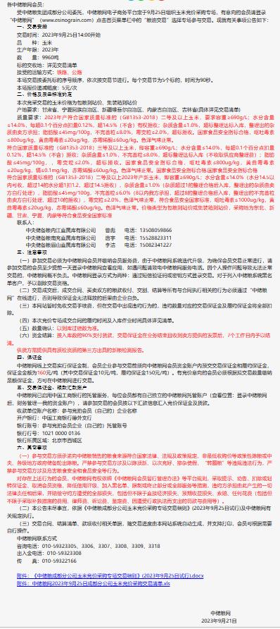 9月25日中儲糧成都公司玉米競價采購專場公告