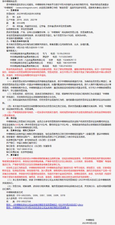 9月26日中儲糧北京分公司玉米競價銷售專場公告
