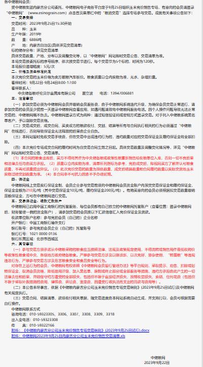 9月25日中儲糧內蒙古分公司玉米競價銷售專場公告