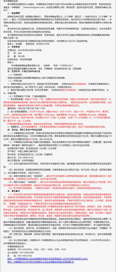9月25日中儲糧西安公司玉米競價銷售專場公告