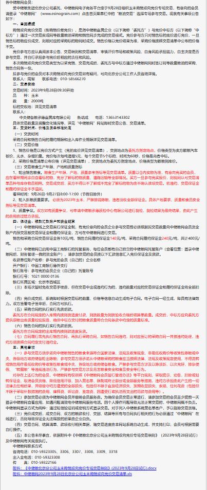 9月28日中儲糧北京分公司玉米購銷雙向競價交易專場公告