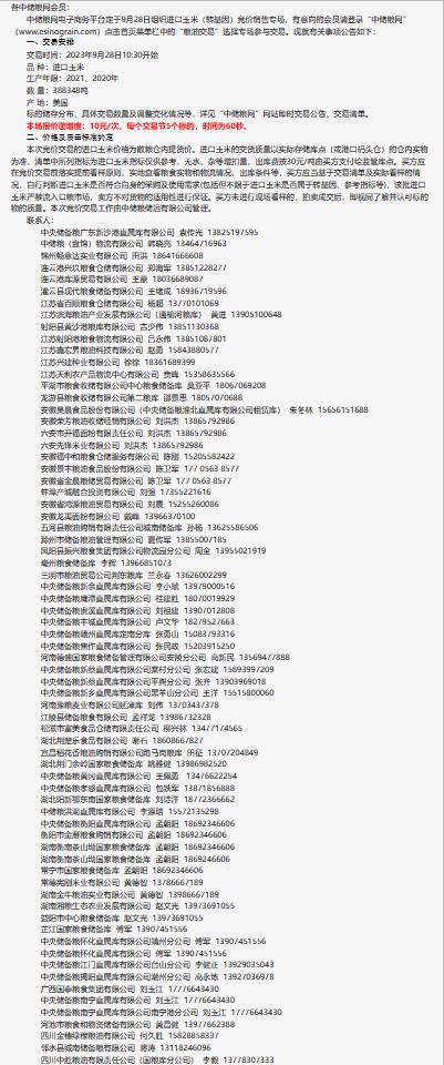9月28日中儲糧進口玉米及整理物(轉基因)競價銷售專場公告