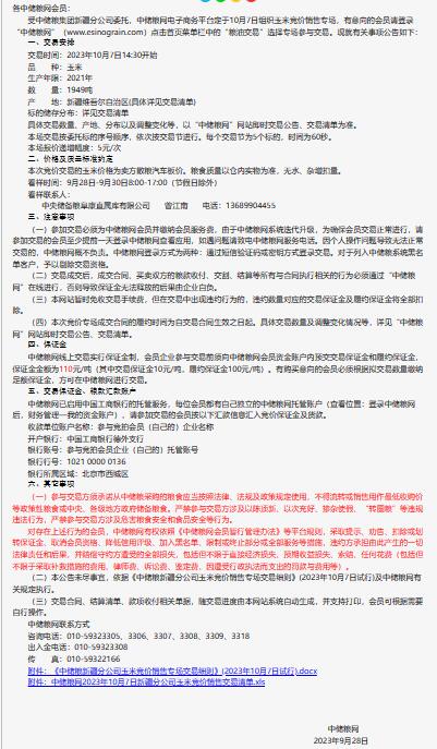 10月7日中儲糧新疆分公司玉米競價銷售專場公告