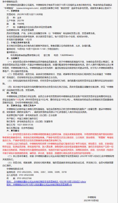 10月12日中儲糧新疆分公司玉米競價銷售專場公告