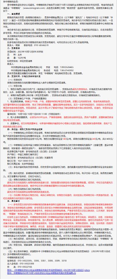 10月12日中儲糧北京分公司玉米購銷雙向競價交易專場公告