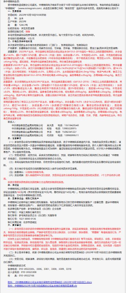 10月18日中儲糧成都公司玉米競價采購專場公告
