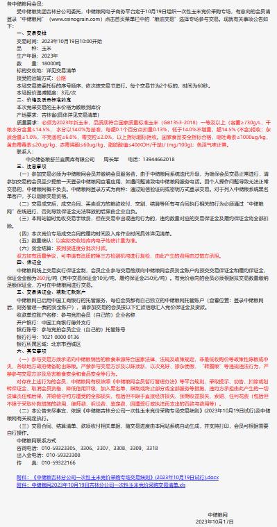 10月19日中儲糧吉林分公司一次性玉米競價采購專場公告