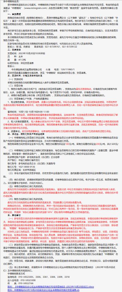 10月20日中儲糧湖北分公司玉米購銷雙向競價交易專場公告