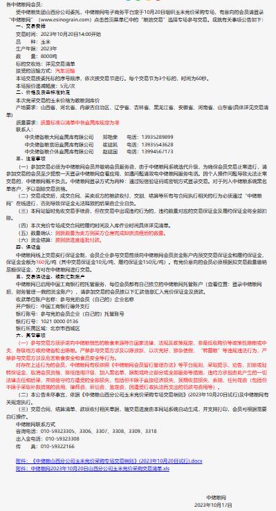 10月20日中儲糧山西分公司玉米競價采購專場公告