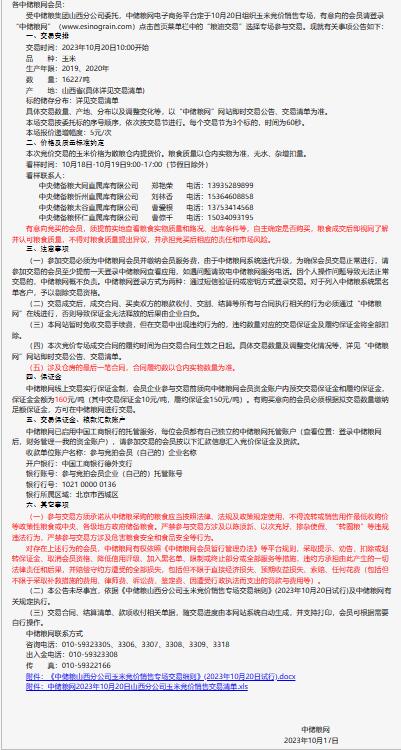 10月20日中儲糧山西分公司玉米競價銷售專場公告