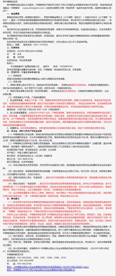 10月23日中儲糧山西分公司玉米購銷雙向競價交易專場公告