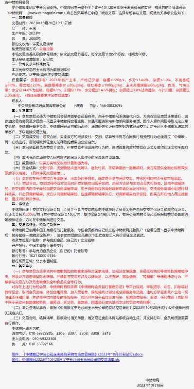 10月20日中儲糧遼寧分公司玉米競價采購專場公告