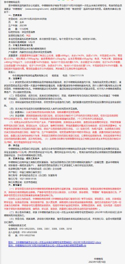 10月20日中儲糧內蒙古分公司一次性玉米競價采購專場公告
