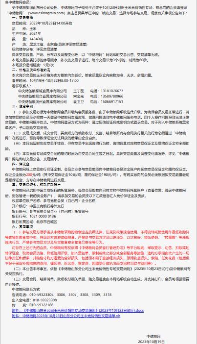 10月23日中儲糧山東分公司玉米競價銷售專場公告
