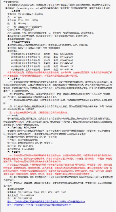 10月24日中儲糧山西分公司玉米競價銷售專場公告