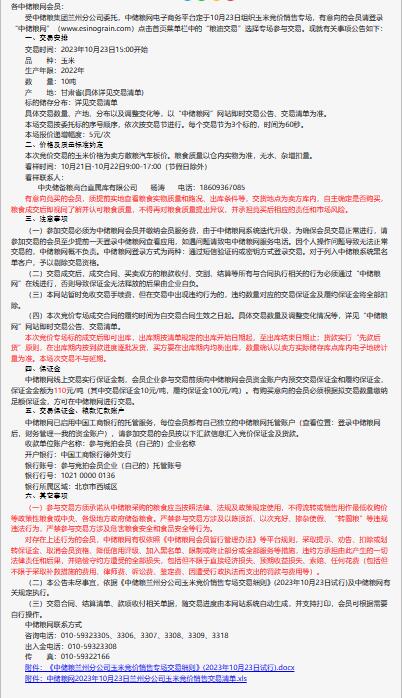 10月23日中儲糧蘭州分公司玉米競價銷售專場公告