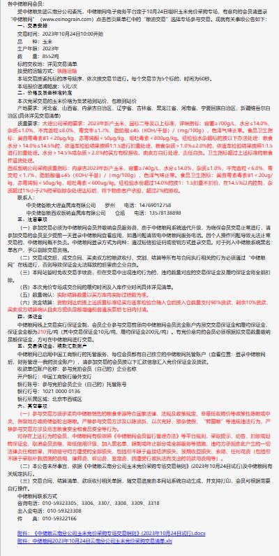 10月24日中儲糧云南分公司玉米競價采購專場公告