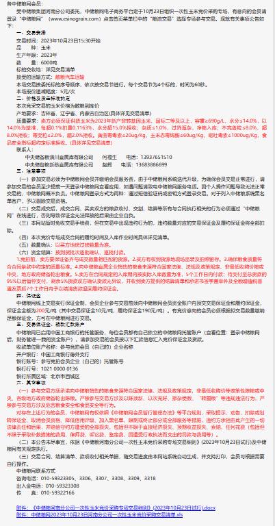 10月23日中儲糧河南分公司一次性玉米競價采購專場公告