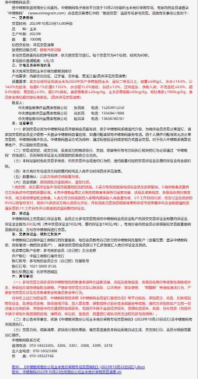 10月23日中儲糧河南分公司玉米競價采購專場公告