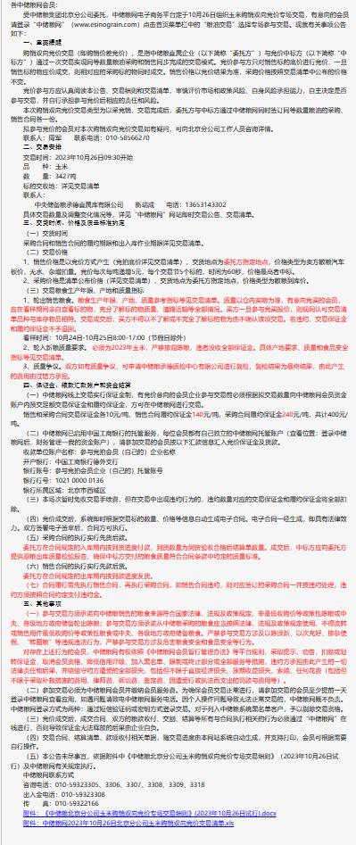 10月26日中儲糧北京分公司玉米購銷雙向競價交易專場公告