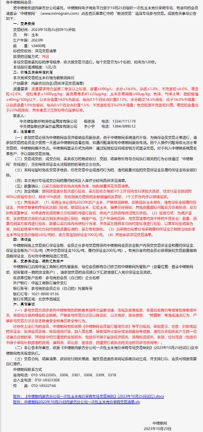 10月25日中儲糧內蒙古分公司一次性玉米競價采購專場公告