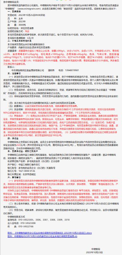 10月25日中儲糧內蒙古分公司玉米競價采購專場公告