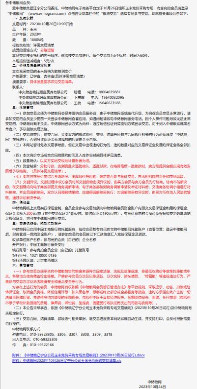 10月26日中儲糧遼寧分公司玉米競價采購專場公告