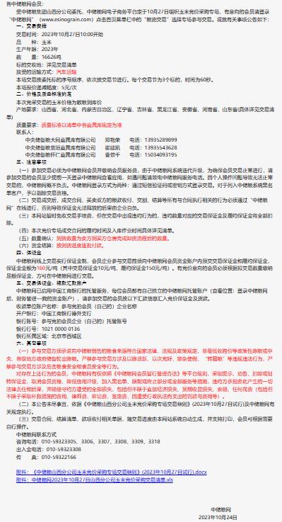 10月27日中儲糧山西分公司玉米競價采購專場公告
