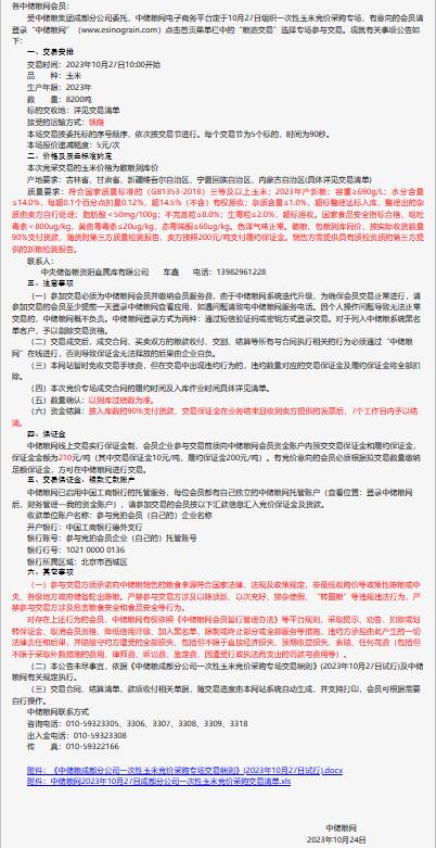 10月27日中儲糧成都分公司一次性玉米競價采購專場公告