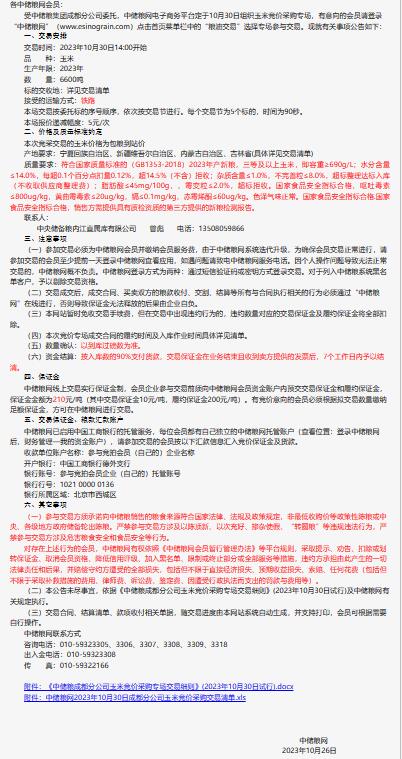 10月30日中儲糧成都分公司玉米競價采購專場公告